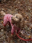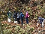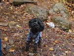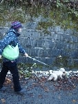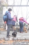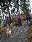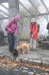 参加のお客様を待つ間、モワ~と濃い霧が立ち込め、本来駅前広場から見えるはずの景色も全く見えず、真っ白な牛乳?あるいはにごり酒?の中にいるようです。「雨だけは降らないでね」と祈るスタッフでした。霧でお客様のお顔が確認しにくかったのですが・・・皆様次々と集合!コースは武蔵御嶽神社~ロックガーデン~長尾平と前回の2008年遠足と同じコースを歩きます。今回の初参加は、トイプードルのココちゃん、ミニチュアダックスのマコちゃんでした!そして遠足ベテランのトイプードルのマロン君、常連さんのMシュナウザーのソイ君とその妹分トイプードルのカリンちゃん、2代目を継いだポメラニャンの小太郎君を加えスタッフ含め総勢12名9頭にて、いざしゅっぱーつ!MWイベント史上に残る波乱万丈な遠足の始まり始まり~・・・