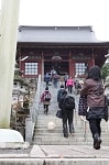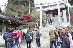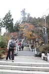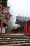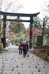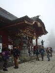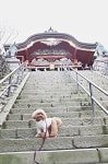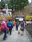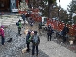 出発時は霧も晴れていたので、気を取り直していざ武蔵御嶽神社へ!遠くの景色は拝めませんでしたが、綺麗に紅葉した木々を見ながら参道を進みます。宿坊が立ち並ぶ天空の町並みを抜け、キツイ坂を上がっていくとおみやげ屋さんの並ぶ武蔵御岳神社の麓に到着!ここまで登るだけでも傾斜がキツく、ふくらはぎがプルプルしていました~。ちょっと息を切らせている人間を横目にワンコは皆元気にルンルン進みます。そんでこっからがまた・・・神様へと続く地獄の階段なのである(汗)!!皆様、マイペースで登ってくだされ~。武蔵御嶽神社の境内に到着し一旦休憩&自由時間です~(このあたりから何やら雲行きが怪しげ・・・)。各々お参りをしたり、奥に祭られている「お犬様」を見学に行ったり、思い思いに探索を済ませて一旦集合。次の目的地ロックガーデンを目指します。