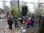 みるみるうちに雲がなくなり青空に!紅葉する木々についた雫が太陽に光を受けキラキラと輝き、ここでやっと景色を楽しむ余裕ができましたね~。ここはチャンスとばかり記念写真をパチリ。とにかくひょんな事から、今年度の初雪を御岳山で味わったMW遠足一行でした。