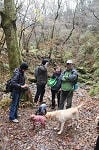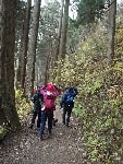 暫らく歩いて長尾平の分岐点に到着。一旦このまま進むかどうか皆様に意見をお伺いしましたが・・・「折角なので行きましょう!」という元気なお返事にひと安心&感謝しつつ、パラパラ霰が降る中、綾広の滝を目指して再出発。幸い雨ではないので濡れることはなさそうだったので良かったです。途中、「天狗の腰掛け杉」を見学しながら少しずつ下っていく山道を進む探検隊。うん探検隊っぽかった。綾広の滝に降りる前の東屋で一旦休憩です。この頃から霰が雪に変わり・・・再び進むべきかどうか迷いましたが、このままちょっと早めの昼食とあいなりました。他の登山者がワンコがたくさんいてちょっとびっくりしてましたね。休憩中、雪が激しく降ってきて、この先ど~なることやら・・・とお空とにらめっこ。。。山の天気は難しいですね~。とりあえず持参のおいしいお弁当を楽しみましょう!