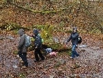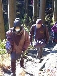 まさかまさかの天気の展開に空いた口がふさがりません。(皆には内緒ですが、私確かに2012年は八方塞がりの厄年ですけど~、何か・・・と、ぶつくさぶつくさ心の中で愚痴っておりました。)とりあえず、一旦集合して引き返すのも悔しいので、長尾平の分岐点まで進むことに。皆様に雨具の用意もしていただいていたので、帽子やフードをかぶりつつ山道に入っていきます。