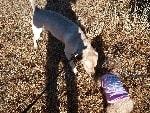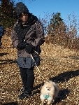 長尾平に着いて自由時間です。茶屋でホットワイン、ビールなど、車を運転しない方はどーぞ一杯やってくだされ~。見晴らし台まで歩いていくと雪が降った後だけに空気が冷たく透き通っていて、遠くの山々や、都心のビル郡までよく見えました~。芝生の広場で暫らく暖かい日の光を浴びながらワンコと遊びましょう。休憩でーす!走る犬、くわえる犬、寝る犬・・・まぁ、色々。