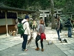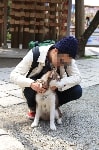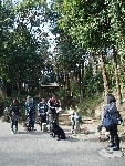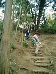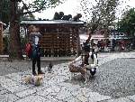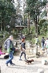 お天気が良かったので木々の間から明るい日差しを浴びながら、それぞれのペースでてくてく歩いていきます。小1時間もすると源氏山公園の葛が岡神社に到着~。まずは、一旦休憩にいたします。各々、給水タイムやトイレタイム・・・カメラをお持ちの方は早速愛犬の撮影タイムって感じですね~♪日頃の「マテ」のトレーニングの成果が見えたり~↑見えなかったり~↓で(笑)!