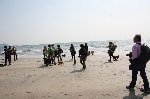 細い路地の住宅街を抜けると、そこにはキラキラ輝く由比ヶ浜海岸が現れます。波も穏やかな広~い海がみんなを出迎えてくれました♪