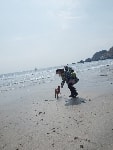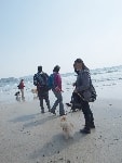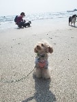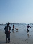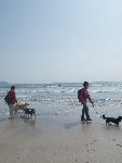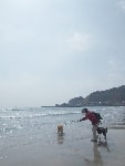 海岸でカッ飛び走るワンコあり、波打ち際で水浴びをするワンコあり、初めての海にびっくり仰天で固まるワンコあり、砂浜の匂いを興味津々で堪能するワンコあり・・・ワンコの知られざる一面を見れる場所なのだ。態度はでかいくせに肝っ玉の小さいバカボンは、ラブのくせして波打ち際でビビッておりまして、情けなくて母ちゃん涙が出るぜっ(爆)・・・って感じだったとかね。