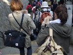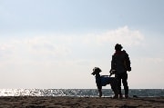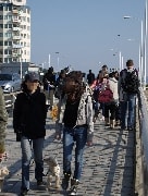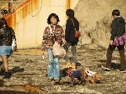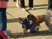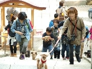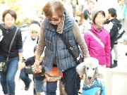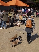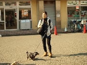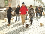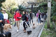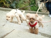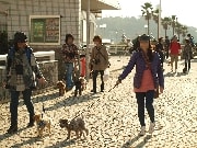 今回は小田急片瀬江ノ島駅9:30集合です。そんなに長い距離ではありませんのでのんびり集合でした。皆様車の方も、電車の方も続々と駅に到着。駅前の広い場所に陣取って集合です。スタッフ合わせ人間26名、ワンコ20頭の御一行様の出来上がり~。駅前で水分調達やおトイレを済ませて、諸注意事項とコースの簡単な説明が終わって、いざ江ノ島へしゅぱーつです。今回お初の参加はミディアム・プードルのアラン君です。さて皆様、頑張って参りましょう!