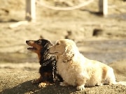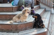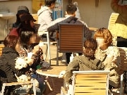 最後は希望者で恒例(?)のカフェへGO!最近、イベントの人数も多くなり、うまいことお店に入れないことも多かったのですが、下見に行ったYONセンセ、eiちゃんが新たなワンコOKのお店を発見!予約交渉して皆で入ることができました~。場所は片瀬江ノ島駅近くを流れる境川沿いのカフェ「DIEGO BY THE RIVER」です。