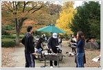 さてさて、BBQの開始です~。MWスタッフは運搬・火起こしに駆け回り相変わらずバタバタしていましたが、2度目という事もあり、前回の準備より早かったですかね~?さてここから合流したのが、ブン君&Rieさんとワパちゃんファミリー、コロちゃんファミリー、小麦&福ファミリー、でっす。管理事務所のご厚意でまたまた隅っこの4テーブルを貸切で使って良いことになりました~。有難うございます!冷凍でしたが、肉はロースにハラミ、豚さん。豚汁にシャケのホイル焼き、トルティーヤ、フランクフルト、などなど。。。お好きなものを食べてください~。久しぶりのMWBBQで卒業生同士の話もはずみます。実は。。スモークセットを買っており、燻製を作ろうとしていたのですが。。すっかり準備にかまけて忘れてしまいました。残念っ!次回のお楽しみということで、とっておきます~。ワイワイガヤガヤと3時間半ぐらい。お日様も出ていてちょっと火の側は暑いくらいでBBQ日和でした!