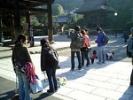 建長寺の門にて車で来たMaruちゃんファミリーと合流し、これでスタッフ合わせて総勢12名+10頭、全員集合完了!諸注意と簡単な紹介をした後、建長寺に入ります。入場料を払う為の受付があるのですが、事前にマザーウルフから連絡を入れておきました。「しつけ済みのワンだけです!」ということで黙認してもらいスルー。