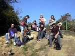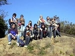 長くて急な石段、アップダウンが多い山道、うっそうとした森の中をおよそ1時間歩き続け、ついに大平山の頂上&広場へ到着。岩場で皆で記念撮影。頂上付近の広場は誰もいなくてマザーウルフ遠足チームの貸切りでした!なんせ結構出発時間が早かったからねー。早起きは3文の得!?さて、広場で思いっ切り遊ぼー!!