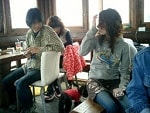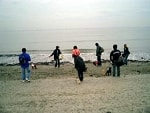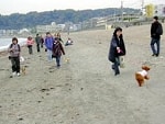 「やっと着いた~」八幡宮からのこの道のりは、UP&DOWNの無い平坦な道だったんですが、朝からの疲れが溜まっていて皆結構へとへとになっていましたね~。海の見える個室?に15名。やっと座れたー!。ビールやらピザやらドライカレー等、食べたいものを思い思いにオーダーして話に花を咲かせ楽しいひととき。皆疲れを癒しました。オーダーを取りに来るおねえさんは犬が多いのでちょっとびっくりしていましたがね。。。(笑)