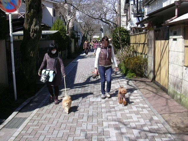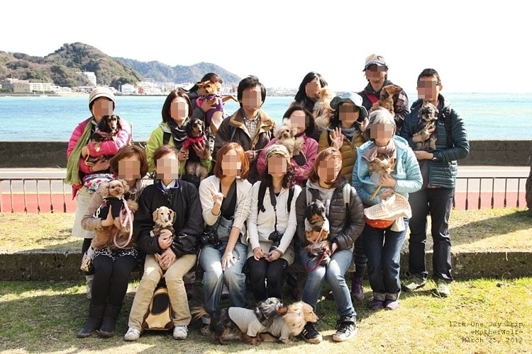 今回の遠足の集合は鶴岡八幡宮の大鳥居の下に9:00集合です。電車の方、車の方、歩きの方。。皆様時間通りにお集まりいただき、毎度有難うございます。雲はありましたが、天気もよく遠足日和でした。今回のコースは鎌倉の鶴岡八幡宮より衣張山そして名越切通しを通り、住宅街を抜け披露山公園、逗子海岸、JR逗子駅という全長12~13キロあります。今までのマザーウルフ遠足の中で恐らく一番長く歩くコースです。難点は途中ぬかるみがある事とトイレが少ないこと。。という訳で受付を済ませた方から順次、八幡宮内の源氏池の横にあるベンチへ移動。トイレも済ませてくださいね~。今回のマザーウルフ探検隊は総勢18名+ワンコ16頭です。お初の参加はポメラニアンの小太郎君。さあて、衣張山へ向けて出発です!