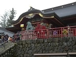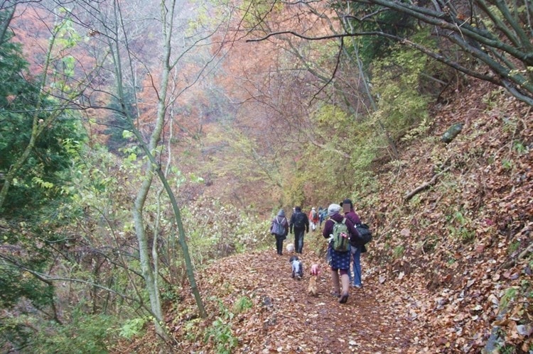 出発時は霧も晴れていたので、気を取り直していざ武蔵御嶽神社へ!遠くの景色は拝めませんでしたが、綺麗に紅葉した木々を見ながら参道を進みます。宿坊が立ち並ぶ天空の町並みを抜け、キツイ坂を上がっていくとおみやげ屋さんの並ぶ武蔵御岳神社の麓に到着!ここまで登るだけでも傾斜がキツく、ふくらはぎがプルプルしていました~。ちょっと息を切らせている人間を横目にワンコは皆元気にルンルン進みます。そんでこっからがまた・・・神様へと続く地獄の階段なのである(汗)!!皆様、マイペースで登ってくだされ~。武蔵御嶽神社の境内に到着し一旦休憩&自由時間です~(このあたりから何やら雲行きが怪しげ・・・)。各々お参りをしたり、奥に祭られている「お犬様」を見学に行ったり、思い思いに探索を済ませて一旦集合。次の目的地ロックガーデンを目指します。