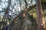 境内に続く階段を下りて途中から分岐する長尾平方面の山道に差し掛かると、空からちっちゃいラムネみたいなものがパラパラと落ちてきました。え~?ええぇ~?はぁ~?なんだこりゃ~?と拾い上げるとどうやら氷の塊みたいです。レポートを書きながら調べて見ましたが、「霰(あられ)は、雲から降る直径5mm未満の氷の粒のこと」まさに降ってきたのは霰ってヤツでした。※ちなみに直径5mm以上のものが雹(ひょう)というらしいです。