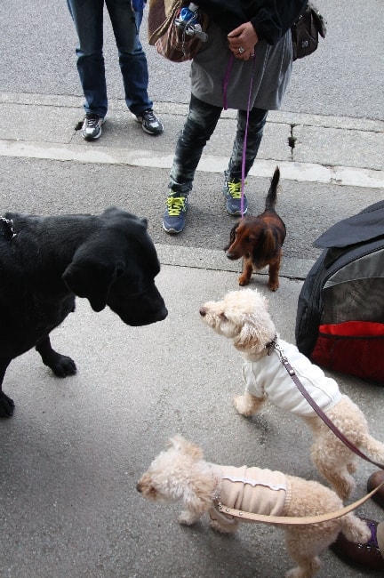 マザーウルフ遠足では恒例の光景なのですが・・・毎度、観光に来ている方々からはパシャパシャと写真を撮られておりまして(汗)。しかし、みんな吠えずに大人~しく待っていくれましたね・・・「イイコだ~♪」の優等生です。