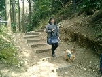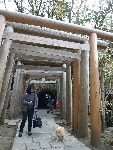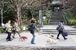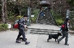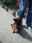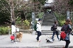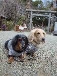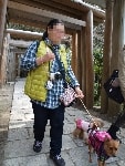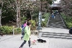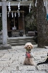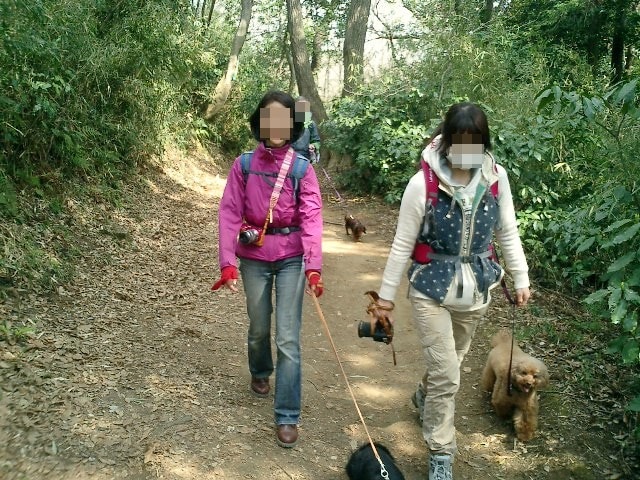お天気が良かったので木々の間から明るい日差しを浴びながら、それぞれのペースでてくてく歩いていきます。小1時間もすると源氏山公園の葛が岡神社に到着~。まずは、一旦休憩にいたします。各々、給水タイムやトイレタイム・・・カメラをお持ちの方は早速愛犬の撮影タイムって感じですね~♪日頃の「マテ」のトレーニングの成果が見えたり~↑見えなかったり~↓で(笑)!