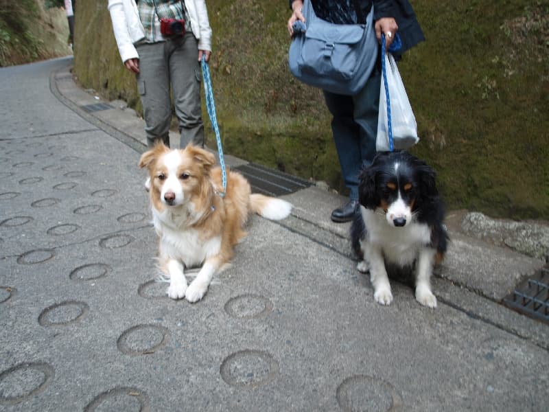 そうこうしているうちに、無事「高徳院」へ到着~。ここでもワンコは入れないので、お預かりタイムで休憩です。パパさんママさんが、大仏様を見に行ったり、ここでしか手に入らないお土産をGETしにいったりとしている間、ワンコ組は観光客のお邪魔にならないよう、謙虚に待ちのポーズ!!