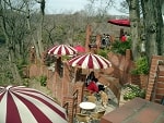 しばらく山の中を歩き、前回の遠足でも立ち寄った、天空のテラス「樹ガーデン」へとまいります!比較的時間が早かったこともあり、全員入れるだけの席が空いていたので、ここでしばし休憩です。