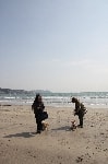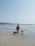 海岸でカッ飛び走るワンコあり、波打ち際で水浴びをするワンコあり、初めての海にびっくり仰天で固まるワンコあり、砂浜の匂いを興味津々で堪能するワンコあり・・・ワンコの知られざる一面を見れる場所なのだ。態度はでかいくせに肝っ玉の小さいバカボンは、ラブのくせして波打ち際でビビッておりまして、情けなくて母ちゃん涙が出るぜっ(爆)・・・って感じだったとかね。
