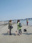 細い路地の住宅街を抜けると、そこにはキラキラ輝く由比ヶ浜海岸が現れます。波も穏やかな広~い海がみんなを出迎えてくれました♪