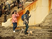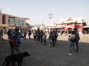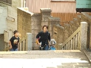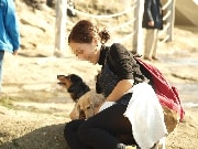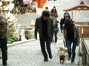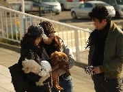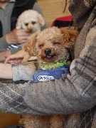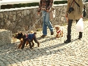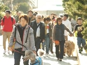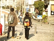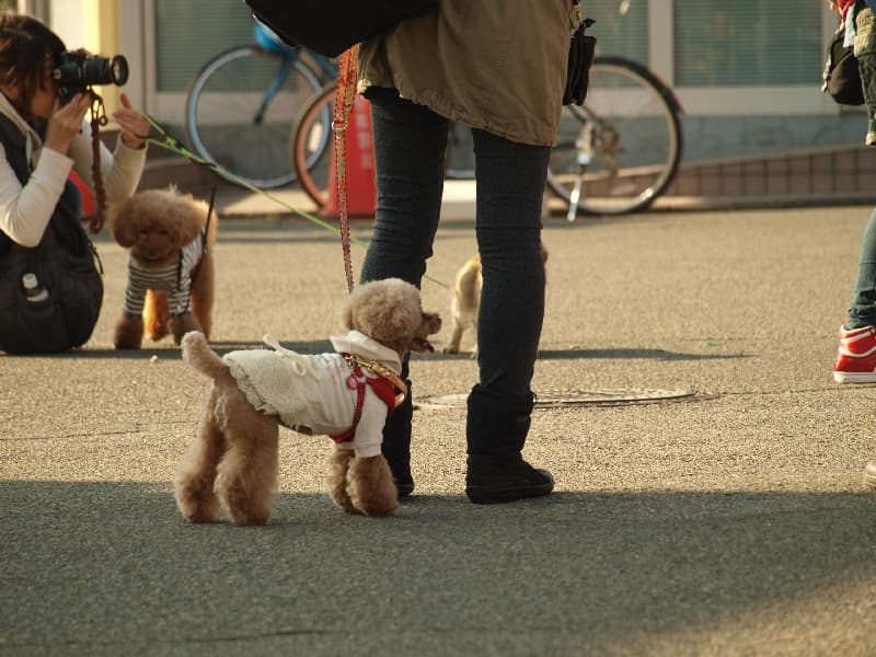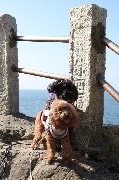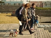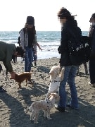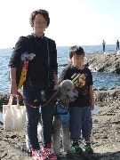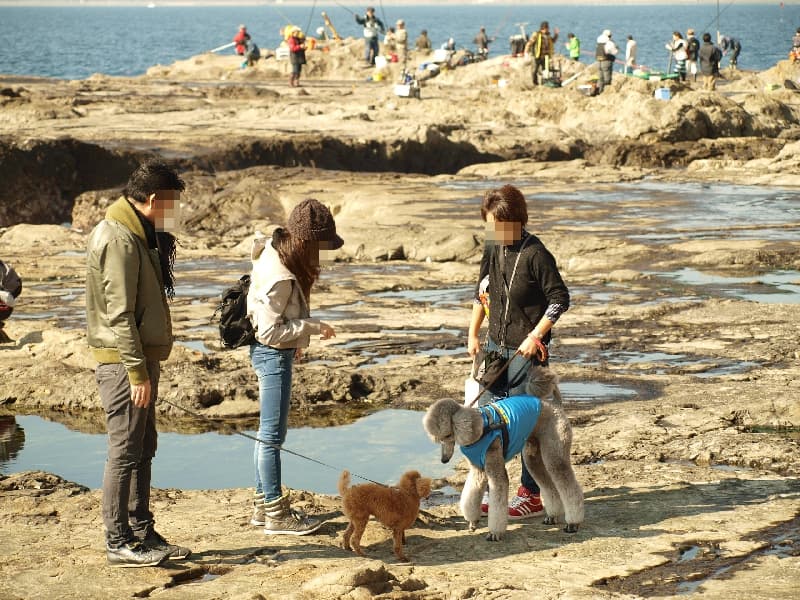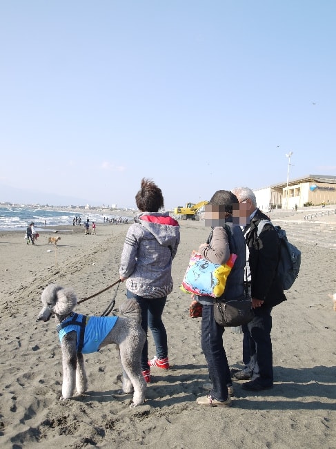 今回は小田急片瀬江ノ島駅9:30集合です。そんなに長い距離ではありませんのでのんびり集合でした。皆様車の方も、電車の方も続々と駅に到着。駅前の広い場所に陣取って集合です。スタッフ合わせ人間26名、ワンコ20頭の御一行様の出来上がり~。駅前で水分調達やおトイレを済ませて、諸注意事項とコースの簡単な説明が終わって、いざ江ノ島へしゅぱーつです。今回お初の参加はミディアム・プードルのアラン君です。さて皆様、頑張って参りましょう!