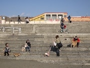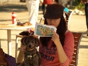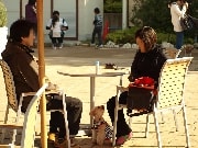 最後は希望者で恒例(?)のカフェへGO!最近、イベントの人数も多くなり、うまいことお店に入れないことも多かったのですが、下見に行ったYONセンセ、eiちゃんが新たなワンコOKのお店を発見!予約交渉して皆で入ることができました~。場所は片瀬江ノ島駅近くを流れる境川沿いのカフェ「DIEGO BY THE RIVER」です。