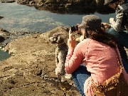 さて、奥津宮を過ぎて稚児が淵に。実は第1回目の遠足の下見では稚児が淵の岩場に降りて遊ぶという計画だったのですが、毎回潮が満潮近くて前の遠足では2回とも降りれなかったのです。ところが今回は遠めに釣り人が見えていたので、降りれるかも!期待通りバッチリ念願の岩場へ降りれました~。ちょっと波が近くまで来ていたのですが、楽しかったです~。ココで一旦解散、みなさま気を付けて遊んでください。各自自由にランチ後、サムエルコッキング苑前の広場に集合です~。
