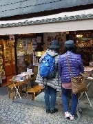 休憩後、稚児が淵を目指して出発~。今回、ランチタイムはお弁当を持ってきたり、お好きなお店に入って各時自由に食べてもらうので、道すがら食べたいものや入りたいお店を物色しながら歩いてもらいました。奥津宮に行く途中も以前からあるお店、カフェに変わったお店とかいろいろあって、目移りしましたね。あ、デッキでBBQのできるところもある~。こんどはココでBBQ企画も良いかもです。