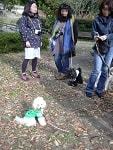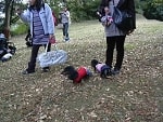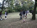 今回の集合場所は京急金沢文庫駅です。今回はウォーキングの後はBBQのためマザーウルフスタッフは、早朝買出し~金沢自然公園の駐車場~駅に移動と、バタバタと集合。9:20には金沢文庫駅に到着し、お客様お迎えの準備です。お客様一番乗りは「こもみ」ママとおねーちゃん。その後、皆様順調に集合いただき、9:50にはウォーキングチーム(スタッフ合わせ)16名・11頭が全員(頭)集合。いつもながら集合時間を守っていただき有難うございます~。大変助かります~。簡単なスケジュールの説明と諸注意が終わり、しゅっぱーつ!今回、お初の参加はラッキー君(1才)&papa&mamaさんです。