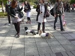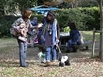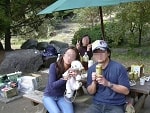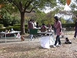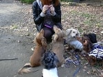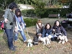 途中で足を止め、広場でウォーキングチーム記念撮影です。少し人も犬も水分補給して休みましょう。