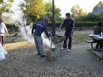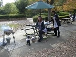 さてさて、BBQの開始です~。MWスタッフは運搬・火起こしに駆け回り相変わらずバタバタしていましたが、2度目という事もあり、前回の準備より早かったですかね~?さてここから合流したのが、ブン君&Rieさんとワパちゃんファミリー、コロちゃんファミリー、小麦&福ファミリー、でっす。管理事務所のご厚意でまたまた隅っこの4テーブルを貸切で使って良いことになりました~。有難うございます!冷凍でしたが、肉はロースにハラミ、豚さん。豚汁にシャケのホイル焼き、トルティーヤ、フランクフルト、などなど。。。お好きなものを食べてください~。久しぶりのMWBBQで卒業生同士の話もはずみます。実は。。スモークセットを買っており、燻製を作ろうとしていたのですが。。すっかり準備にかまけて忘れてしまいました。残念っ!次回のお楽しみということで、とっておきます~。ワイワイガヤガヤと3時間半ぐらい。お日様も出ていてちょっと火の側は暑いくらいでBBQ日和でした!