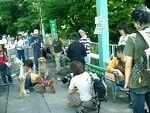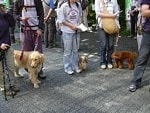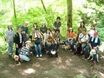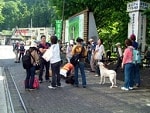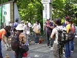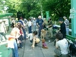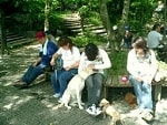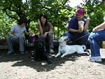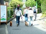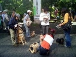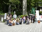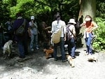 今回参加の卒業生が順々に集まって点呼完了。レディちゃんファミリーがちこっと遅れていたので先に行くことに。11ワンコ+卒業生/スタッフ総勢18名。参加の皆さんの紹介をした後、簡単にスケジュール、注意事項を確認して「いざ、しゅっぱぁーつ!」