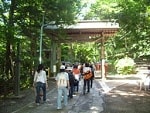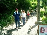 さぁて、次の目的地は「薬王院山門」。ここからは自由行動でぶらぶらと歩いていきます。途中でドラマの舞台にもなった十号茶屋に寄って「にんにく焼き味噌」を買ったり、権現茶屋にて寿ママお勧めのぶどう酢入り「権現力ソフトクリーム」を食べながら山門に集合です。