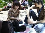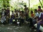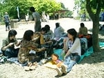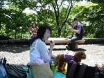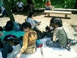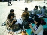 山頂はまだ人陰が少なく、日陰にブルーシートを引いて皆でお昼タイム。