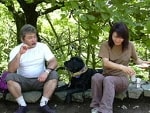 ちょっと歩くとケーブルカーの駅に到着!一旦、休憩ですっ!思い思いに飲み物を飲んだり、おやつを食べたり、ビールを飲んだり。。