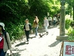薬王院にて四天王、大天狗、烏天狗などを見学しながら、本日の無事を祈りお参りをした後、山頂目指して、Let’go!薬王院の階段を抜けると、木陰が多い涼しい道を登っていきます。いやいや空気が旨い!茶屋が見えてくると山頂近し。
