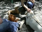 売店のおばちゃんもワンコがたくさんいるのを喜んでくれて容器に水を入れて、いっぱい振舞ってくれました(感謝)。レトリバーチームはガブガブ豪快に飲んでましたね~。