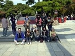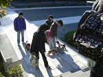 建長寺の門にて車で来たMaruちゃんファミリーと合流し、これでスタッフ合わせて総勢12名+10頭、全員集合完了!諸注意と簡単な紹介をした後、建長寺に入ります。入場料を払う為の受付があるのですが、事前にマザーウルフから連絡を入れておきました。「しつけ済みのワンだけです!」ということで黙認してもらいスルー。