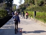 午前8時45分北鎌倉駅。参加者の皆さん&ワンコが続々と電車で到着。キャリーバッグからワンコを出して。。。初対面のコも多かったので、ちょっと様子を見ながら皆でご挨拶。そして集合場所へ出発。Let's go! 建長寺!