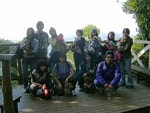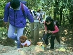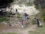 長くて急な石段、アップダウンが多い山道、うっそうとした森の中をおよそ1時間歩き続け、ついに大平山の頂上&広場へ到着。岩場で皆で記念撮影。頂上付近の広場は誰もいなくてマザーウルフ遠足チームの貸切りでした!なんせ結構出発時間が早かったからねー。早起きは3文の得!?さて、広場で思いっ切り遊ぼー!!