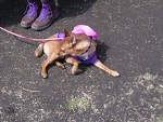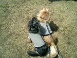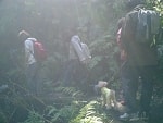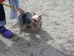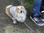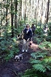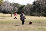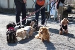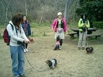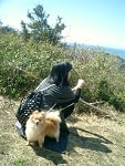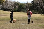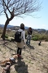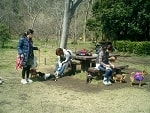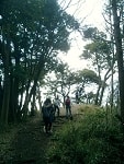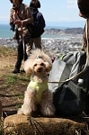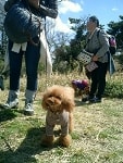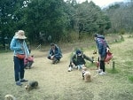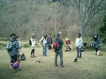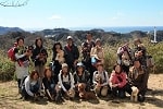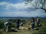 息を切らせながらやっと山頂へ到着~。雲は多かったですが、うっすら富士山も見えてなかなかの眺めです。ここで一旦休憩を取ります。各々水分補給しながらワンコ共々休んでくだされ~。休憩、写真タイムを終えて出発。5分程度山の中を歩くともうひとつの広場に到着します。さてここで集合写真をパチリ。後は一気に山道を下って。。。お昼ポイントの公園へレッツゴーです。