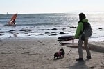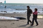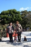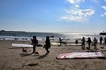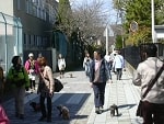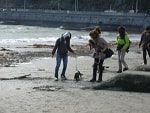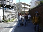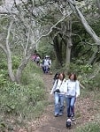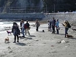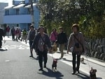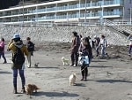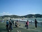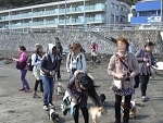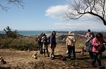 披露山公園に着くと、富士山と江ノ島がくっきり、反対側には葉山の海岸が一望できます。ここで一旦、自由時間です。小さな動物園があるので猿山を見たり、展望台で写真を撮ったり。。。まだ先がありますので水分補給も十分にしておいてくださいね~。次は逗子海岸を目指して出発!これまた山道を降りていきます。足元が滑りやすいので要注意です。海岸沿いの道路に出る前の広場で、2回目の集合写真です。結構風邪が強かったですね。逗子海岸はウィンドサーファーがたくさん。気持ちよさそうに海を滑るサーファーさん達を見ながら海岸をお散歩です。潮の匂いと風が心地よいですね~。