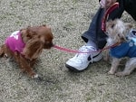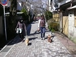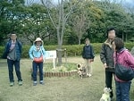 今回の遠足の集合は鶴岡八幡宮の大鳥居の下に9:00集合です。電車の方、車の方、歩きの方。。皆様時間通りにお集まりいただき、毎度有難うございます。雲はありましたが、天気もよく遠足日和でした。今回のコースは鎌倉の鶴岡八幡宮より衣張山そして名越切通しを通り、住宅街を抜け披露山公園、逗子海岸、JR逗子駅という全長12~13キロあります。今までのマザーウルフ遠足の中で恐らく一番長く歩くコースです。難点は途中ぬかるみがある事とトイレが少ないこと。。という訳で受付を済ませた方から順次、八幡宮内の源氏池の横にあるベンチへ移動。トイレも済ませてくださいね~。今回のマザーウルフ探検隊は総勢18名+ワンコ16頭です。お初の参加はポメラニアンの小太郎君。さあて、衣張山へ向けて出発です!