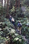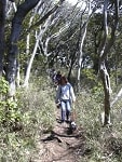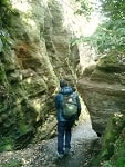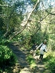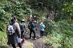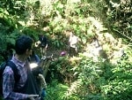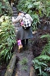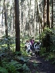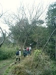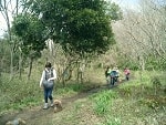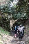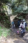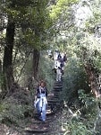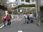 食後の運動も済んだところで、名越の切り通しを目指して出発、住宅街の横の公園を通り過ぎて再び山道に突入です。ところどころ泥濘があるのでご注意ください~。鎌倉の山道は非常に細いところがあるので、一列で歩いていきます。さすが自然の要塞ですね。岩の切り立った切り通しを通過して、住宅街を抜けて披露山公園を目指します~。階段がありますが頑張っていきましょう。
