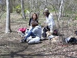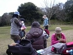 山を降りたところの住宅街の横にある公園について昼食タ~イム。各々ご自由なところでレジャーマットを敷いたり、公園のベンチと机に集まって持ってきたお弁当でお昼ご飯です。ここで注意点!トンビがご飯を狙ってきますよ~。スタッフも下見の時に公園でサッカーをしている子ども達のおにぎりがトンビに取られたところを目撃。後ろから低空飛行でささっと手からおにぎりを奪う技はお見事でした(感心している場合ではありませんね)下見の時のお弁当はおいなりさん。。トンビに油揚げをさらわれないよう必死でした。どうやらトンビの方を意識して見ていると降りてこないらしいのですが。。。ちょっとゆっくり食べるという雰囲気ではなかったですかね。。(苦笑)これも自然の醍醐味ということで。。(汗)この公園芝生が広く奥の方が少し岡になっていて遊ぶには丁度よい所です。食後は皆で遊びましょう。