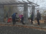 みるみるうちに雲がなくなり青空に!紅葉する木々についた雫が太陽に光を受けキラキラと輝き、ここでやっと景色を楽しむ余裕ができましたね~。ここはチャンスとばかり記念写真をパチリ。とにかくひょんな事から、今年度の初雪を御岳山で味わったMW遠足一行でした。