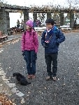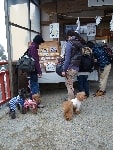 長尾平に着いて自由時間です。茶屋でホットワイン、ビールなど、車を運転しない方はどーぞ一杯やってくだされ~。見晴らし台まで歩いていくと雪が降った後だけに空気が冷たく透き通っていて、遠くの山々や、都心のビル郡までよく見えました~。芝生の広場で暫らく暖かい日の光を浴びながらワンコと遊びましょう。休憩でーす!走る犬、くわえる犬、寝る犬・・・まぁ、色々。