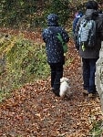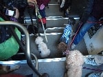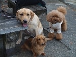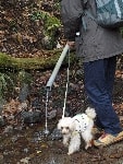 参加のお客様を待つ間、モワ~と濃い霧が立ち込め、本来駅前広場から見えるはずの景色も全く見えず、真っ白な牛乳?あるいはにごり酒?の中にいるようです。「雨だけは降らないでね」と祈るスタッフでした。霧でお客様のお顔が確認しにくかったのですが・・・皆様次々と集合!コースは武蔵御嶽神社~ロックガーデン~長尾平と前回の2008年遠足と同じコースを歩きます。今回の初参加は、トイプードルのココちゃん、ミニチュアダックスのマコちゃんでした!そして遠足ベテランのトイプードルのマロン君、常連さんのMシュナウザーのソイ君とその妹分トイプードルのカリンちゃん、2代目を継いだポメラニャンの小太郎君を加えスタッフ含め総勢12名9頭にて、いざしゅっぱーつ!MWイベント史上に残る波乱万丈な遠足の始まり始まり~・・・