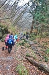 まさかまさかの天気の展開に空いた口がふさがりません。(皆には内緒ですが、私確かに2012年は八方塞がりの厄年ですけど~、何か・・・と、ぶつくさぶつくさ心の中で愚痴っておりました。)とりあえず、一旦集合して引き返すのも悔しいので、長尾平の分岐点まで進むことに。皆様に雨具の用意もしていただいていたので、帽子やフードをかぶりつつ山道に入っていきます。