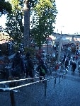 駅を出た広場では大勢の老若男女の様々な団体様が集合し、トレッキングの準備をしておりました。準備体操もとっても大事ですね!2008年に歩いた遠足の時にはまだそんなに知られていなかったのですが、昨今の山ブームとテレビでワンコに優しいと紹介される御岳山、さすがに人気の山ですね~。